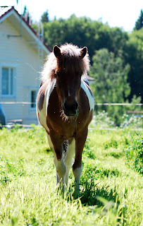 En ratsastanut tänään ollenkaan, koska olen palanut niin pahasti töissä (oon nytten kaksi viikkoa marjatilalla poimimassa mansikoita, ja huhhuh se on raskasta), että mua sattuu joka paikkaan ja korvat ovat ihan tulipunaiset ja sattuu ihan hirveästi, joten en olisi voinut edes laittaa kypärää päähän...